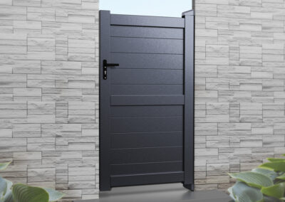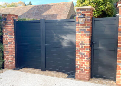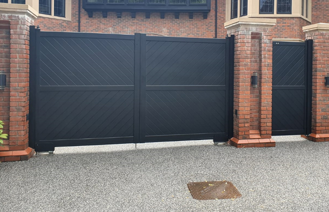 - Available in black and grey as standard, gates can be customised to any RAL colour.